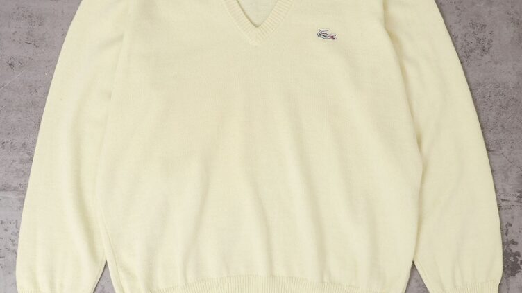 Feeet70’s CHEMISE LACOSTE FRANCE製 ロゴ刺繍 Vネック ウールニットセーター SIZE5
