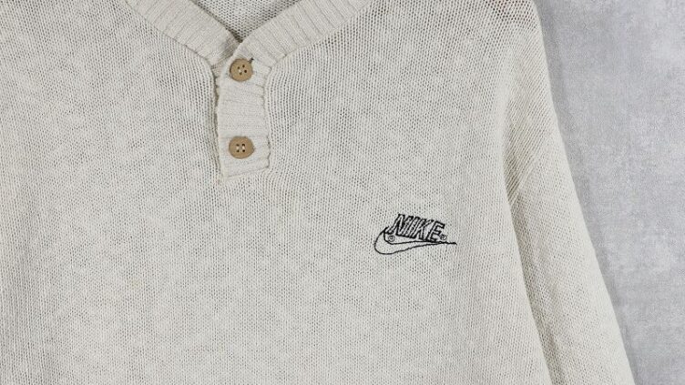 Feeet70〜80’s NIKE ロゴ刺繍 ヘンリーネック コットンニットセーター L