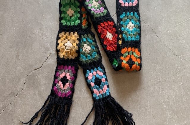 JACK CLOTHING SUPPLY【280cm×8cm】ハンドメイド グラニースクエア クロシェ編み ロングマフラー■ビンテージ オールド レトロ アメリカ古着 かぎ針編み