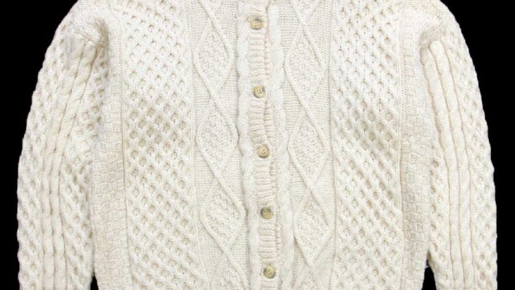 Sixpacjoeアイルランド製 GAELTARRA ケーブル編み ウールニット カーディガン ナチュラル L★フィッシャーマン