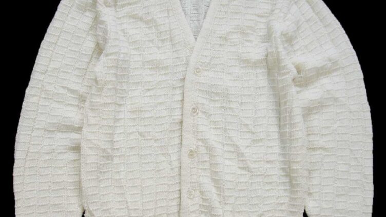Sixpacjoe70s UNKNOWN 編み柄 アクリルニット カーディガン ナチュラル M