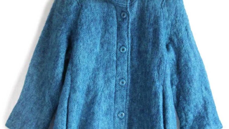 Sixpacjoeアイルランド製 Donegal Design スタンドカラー ハンドニット モヘヤ×ウール パイル ロング コート ブルー ミックス
