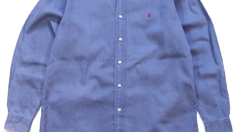 Sixpacjoe90s USA製 ラルフローレン ワンポイント ボタンダウン コットンシャツ ブルーグレー フェード
