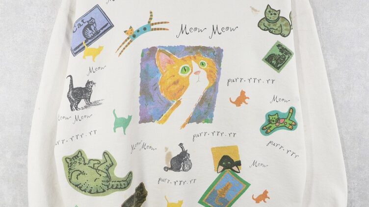Feeet90’s rel-e-vant products USA製 猫プリントスウェット L