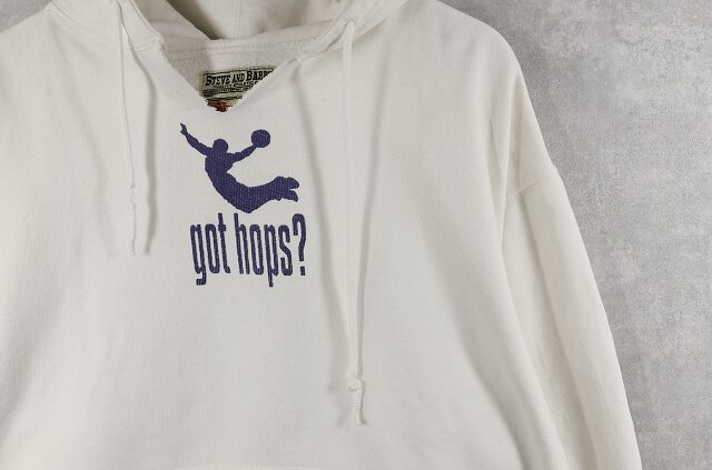 FeeetSTEVE AND BARRY’S “got hops?” パロディプリントスウェットフーディー L