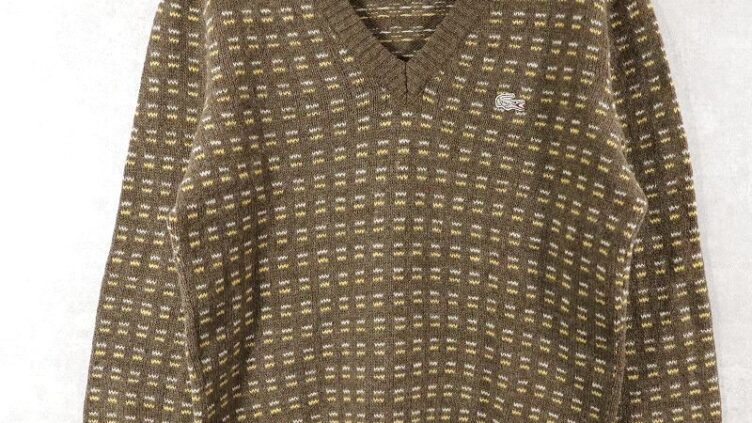 Feeet70〜80’s CHEMISE LACOSTE FRANCE製 総柄 Vネック ウールニットセーター SIZE4