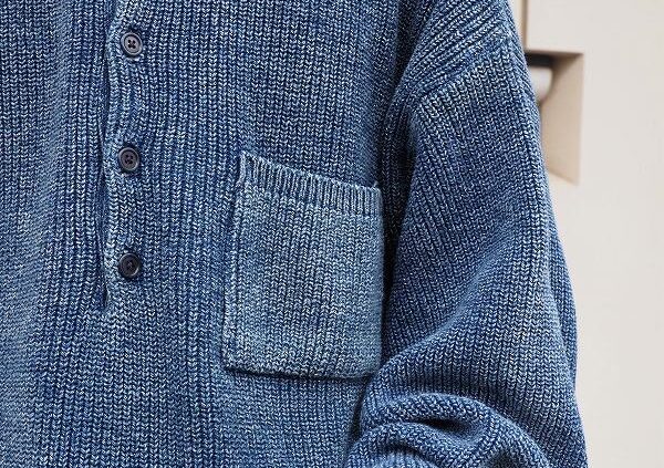 FeeetTHE TERRITORY AHEAD USA製 ハーフボタン インディゴコットンニットセーター 2X