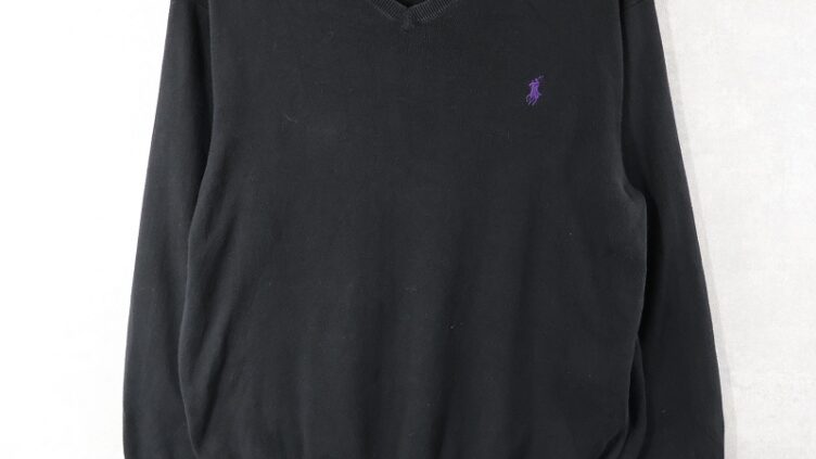 FeeetPOLO Ralph Lauren ロゴ刺繍 “PIMA COTTON” Vネック コットンニットセーター BLACK M