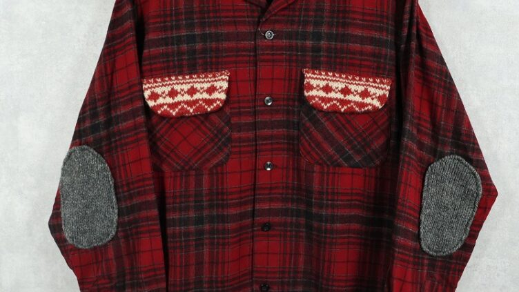 Feeet60’s PENDLETON チェック柄 ニット切り替え ウールオープンカラーシャツ M