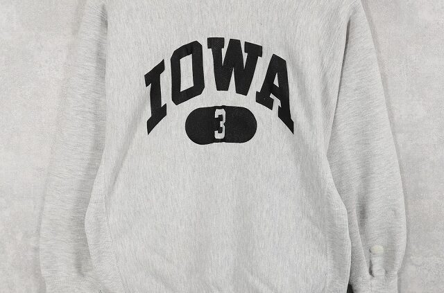Feeet90’s Champion REVERSE WEAVE USA製 “IOWA 3” プリントスウェット M
