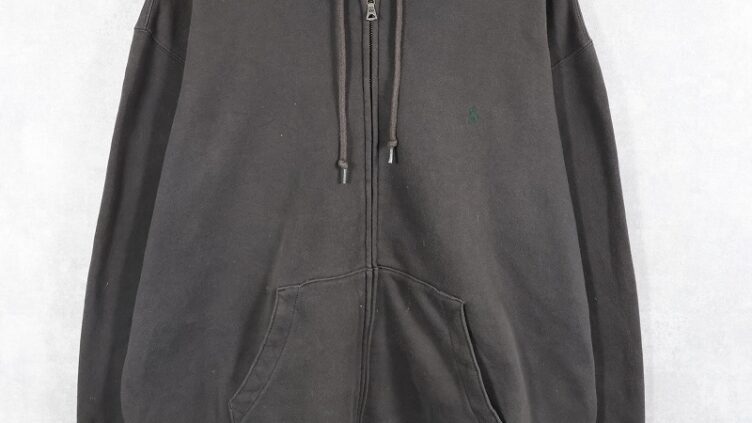 FeeetPOLO Ralph Lauren ロゴ刺繍 スウェットジップパーカー BLACK XXL