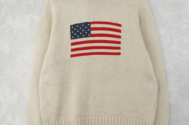 Feeet90’s LANDS’ END 星条旗柄 コットンニットセーター L