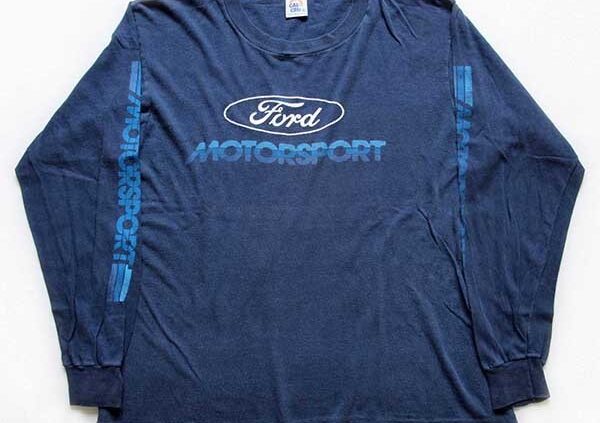 Sixpacjoe90s USA製 Fordフォード MOTORSPORT コットン 長袖Tシャツ 紺 フェード L