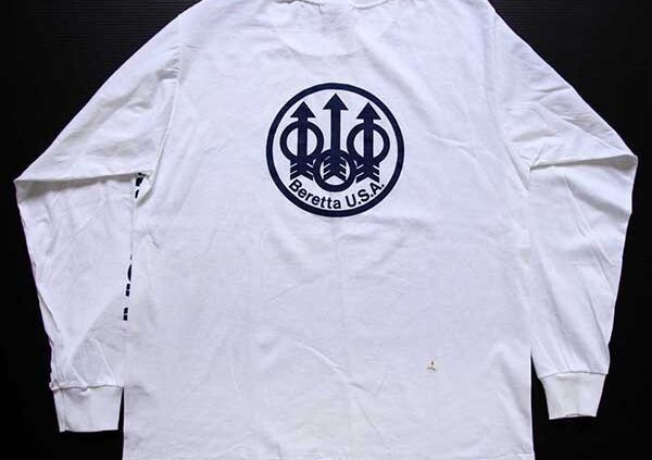 Sixpacjoeデッドストック★80s USA製 Beretta U.S.A. ベレッタ バックプリント 長袖Tシャツ 白 XL