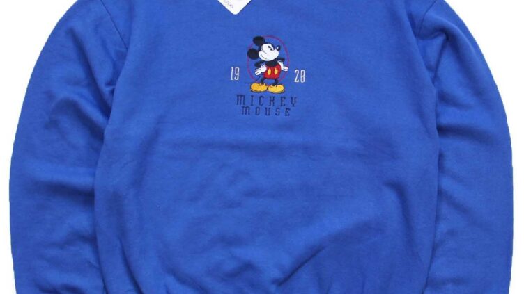 Sixpacjoeデッドストック★90s USA製 Disney ディズニー MICKEY MOUSE 1928 ミッキー マウス 刺繍 スウェット 青 M