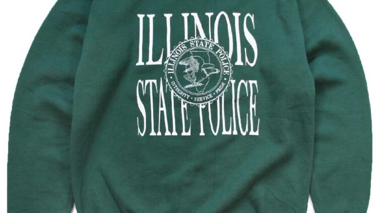 Sixpacjoe90s USA製 Leeリー ILLINOIS STATE POLICE ひび割れプリント スウェット 緑 M