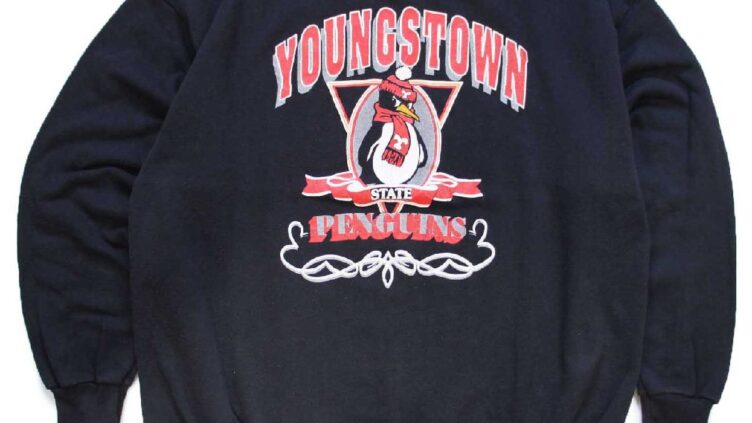 Sixpacjoe90s USA製 YOUNGSTOWN PENGUINS マスコット ひび割れプリント スウェット 黒 XL