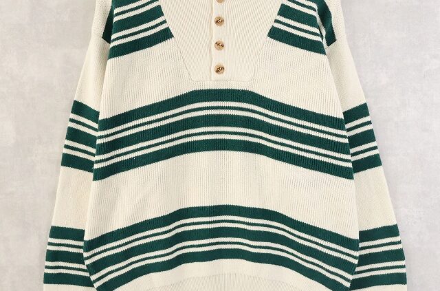 Feeet80’s Eddie Bauer ボーダー柄 ヘンリーネック コットンニットセーター L