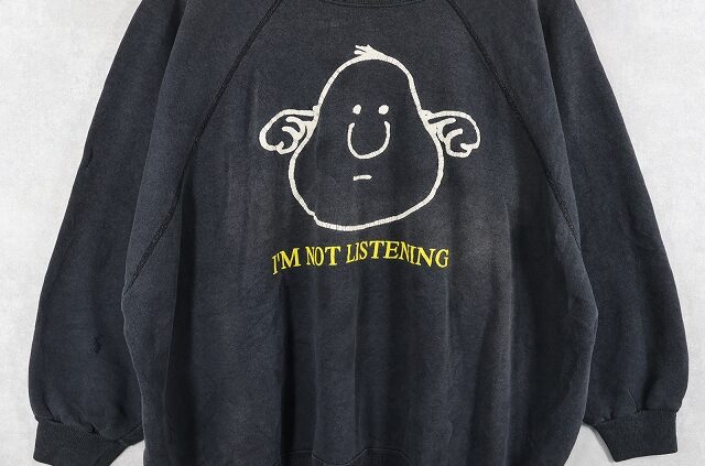 Feeet80’s USA製 “I’M NOT LISTENING” イラストプリント グランスウェット BLACK 2XL