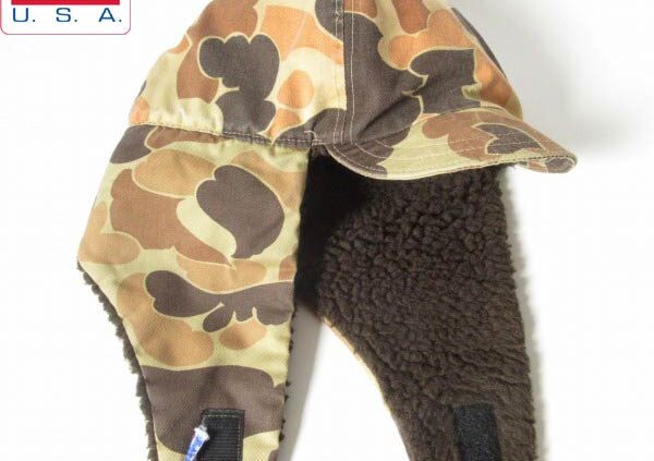 BRIDGEUSA製 ダックハンター カモ 迷彩 耳当て付き ボアライナー キャップ S/M 2WAY ボンバーキャップ アメリカ製 D151