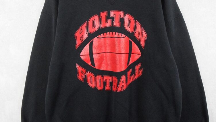 Feeet90’s RUSSELL ATHLETIC USA製 “HOLTON FOOTBALL” 前V プリントスウェット BLACK XL