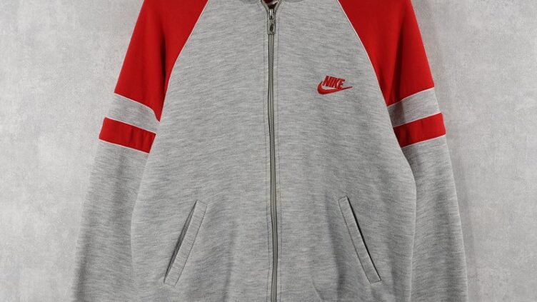 Feeet90’s NIKE 銀タグ ロゴ刺繍 ラグランスウェットジップパーカー M
