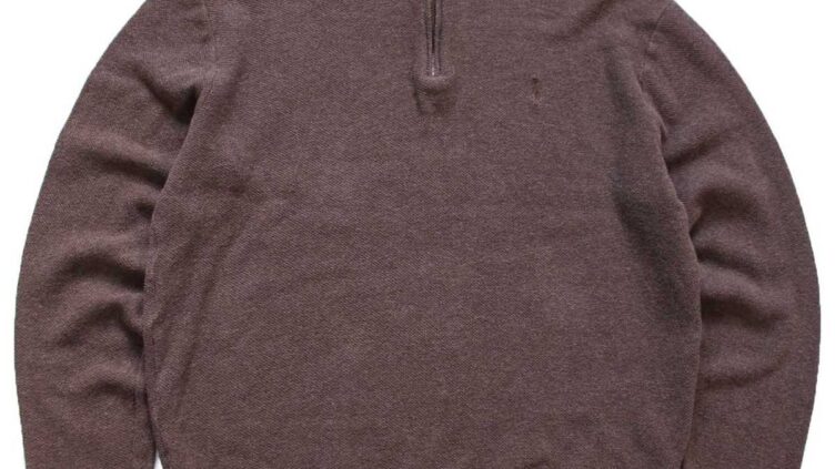 Sixpacjoe00s ペルー製 POLO GOLF ラルフローレン ワンポイント ハイネック ハーフジップ コットン×アルパカニット 鹿の子 スウェット 茶 M