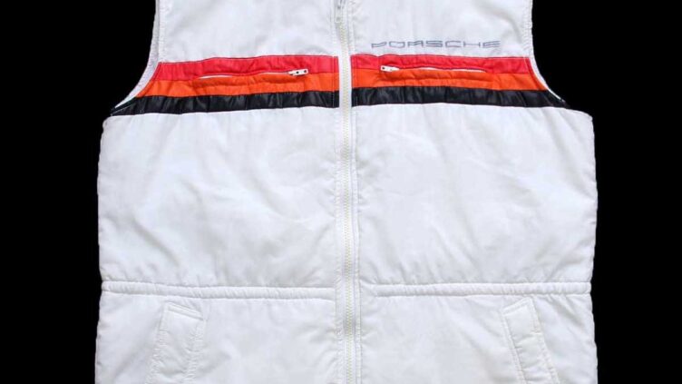 Sixpacjoe80s PORSCHE ポルシェ ライン入り スタンドカラー 中綿入り レーシングベスト 白