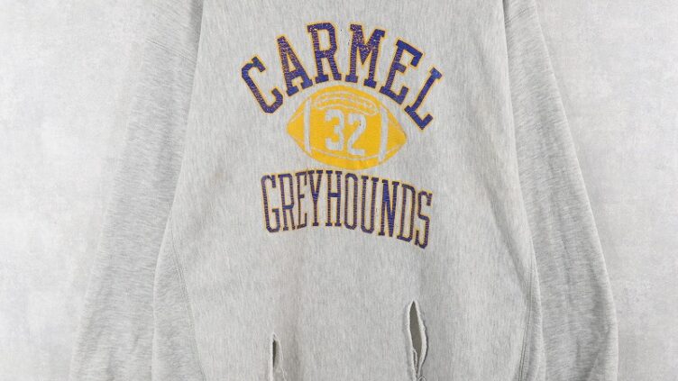 Feeet80’s Champion REVERSE WEAVE トリコタグ USA製 “CARMEL GREY HOUNDS” プリントスウェット XL