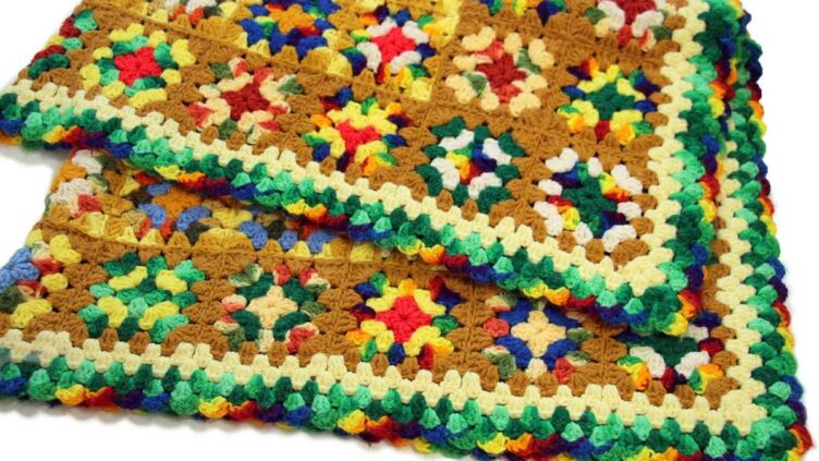 Sixpacjoeスクエア モチーフ ニット グラニー ブランケット★H カギ編み