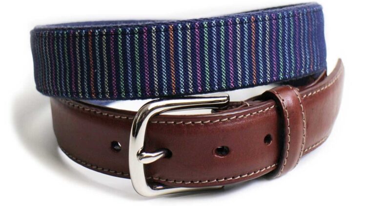 SixpacjoeUSA製 Donald Ross 織り柄 マルチストライプ レザー×コットン ベルト ネイビー 34