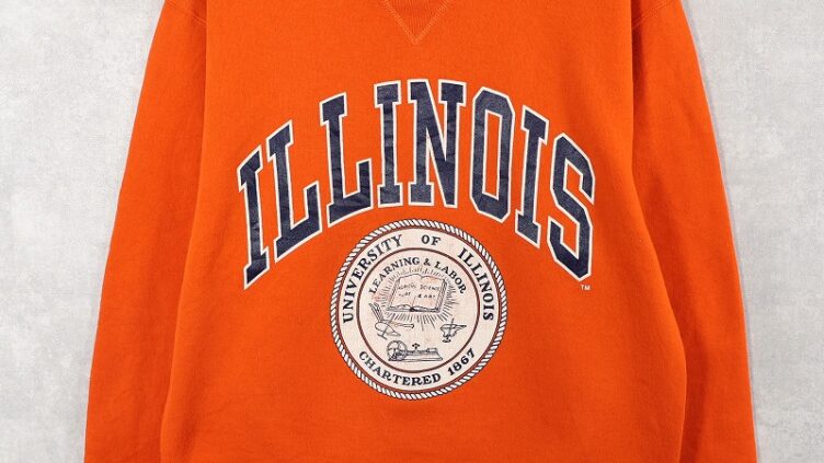 Feeet90’s RUSSELL ATHLETIC USA製 前V “UNIVERSITY OF ILLINOIS” プリントスウェット M