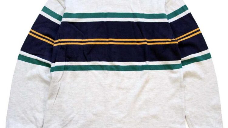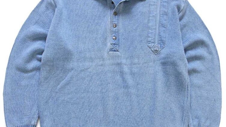 Sixpacjoe90s デンマーク製 BLUE WILLI’S デニム切り替え 襟付き コットンニット セーター インディゴ L