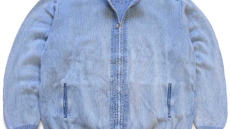 Sixpacjoe90s デンマーク製 BLUE WILLI’S デニム切り替え フルジップ コットンニット セーター インディゴ XXXL★特大
