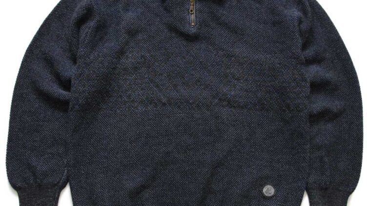 Sixpacjoe90s BLUE WILLI’S ダイヤ柄 襟付き コットンニット セーター チャコールグレー×インディゴ L