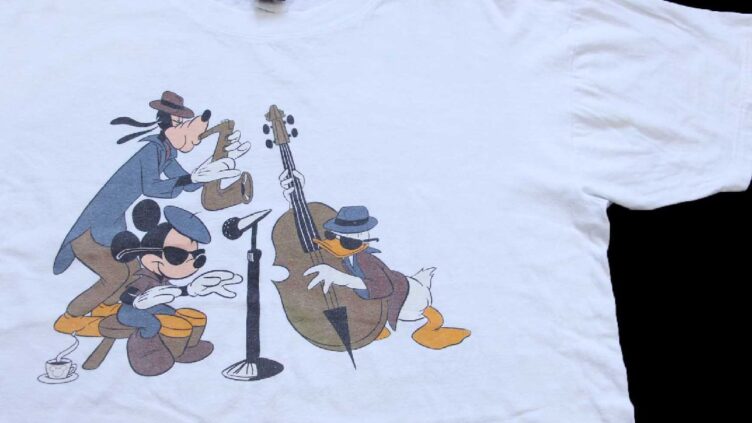 Sixpacjoe00s DISNEYディズニー ミッキー マウス ドナルドダック グーフィー 両面プリント コットンTシャツ 白
