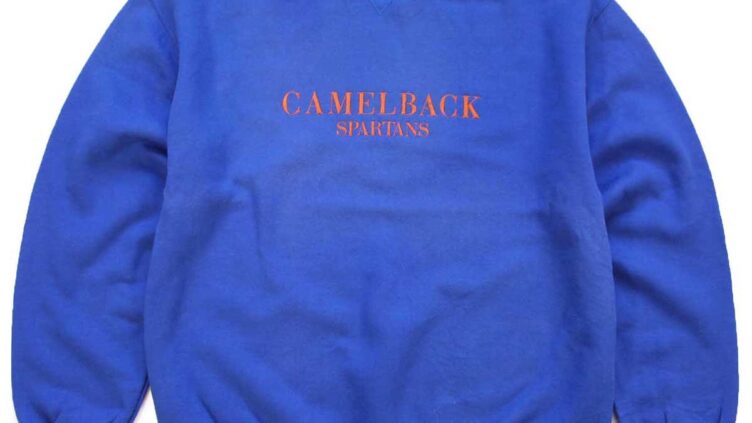 Sixpacjoe90s USA製 RUSSELLラッセル CAMELBACK SPARTANS 刺繍 前V スウェット 青 XL