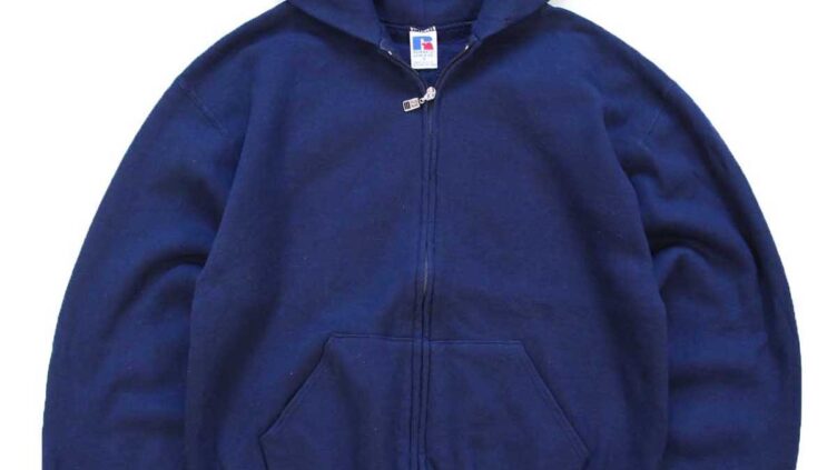 Sixpacjoe90s USA製 RUSSELLラッセル 無地 スウェット ジップパーカー 紺 M★フーディー ブランク
