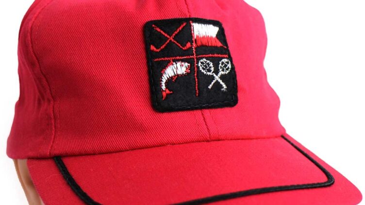 Sixpacjoeデッドストック★80s USA製 ゴルフ フラッグ フィッシング テニス パッチ付き ライン入り キャップ 赤