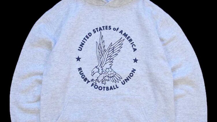 Sixpacjoe90s USA製 RUSSELLラッセル RUGBY FOOTBALL UNION スウェットパーカー 杢ライトグレー L★フーディー
