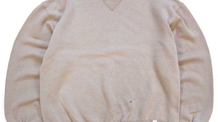 Sixpacjoe90s USA製 RUSSELLラッセル 無地 前V スウェット ブラウンベージュ L★ブランク