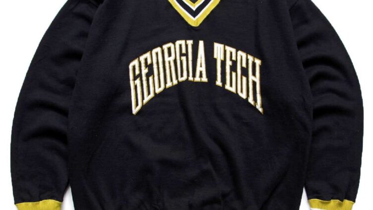 Sixpacjoe70s USA製 RUSSELLラッセル GEORGIA TECH Vネック リブライン スウェット 黒 L