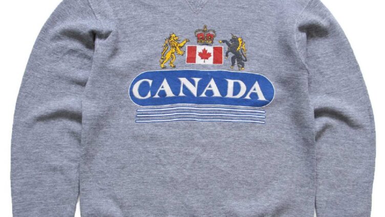 Sixpacjoe80s USA製 RUSSELLラッセル CANADA エンブレム 国旗 ひび割れプリント 前V スウェット 杢グレー M