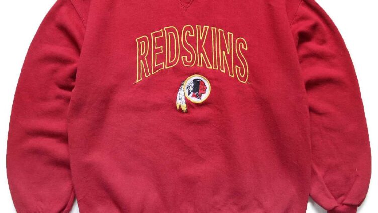 Sixpacjoe90s USA製 RUSSELLラッセル NFL WASHINGTON REDSKINS インディアンヘッド ロゴ刺繍 前V スウェット 濃赤 L