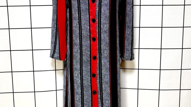 古着屋チエルアルコ【2500円均一対象商品】ストライプ 前開き レトロ 長袖 USA古着 ヴィンテージワンピース