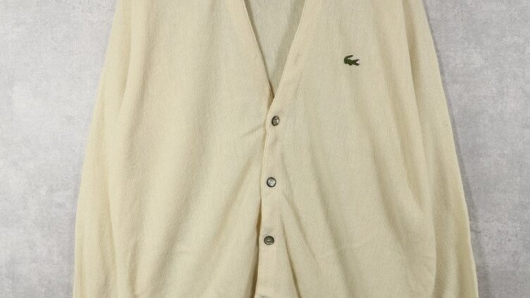 Feeet80’s IZOD LACOSTE USA製 ロゴ刺繍 アクリルニットカーディガン L