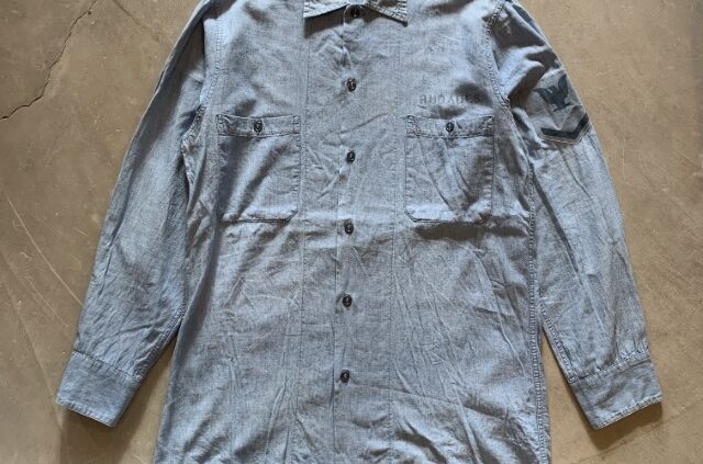 JACK CLOTHING SUPPLY【M/L】60s USN オールコットン 耳付き 長袖シャンブレーシャツ■ビンテージ オールド アメリカ古着 ミリタリー ボックス ステンシル