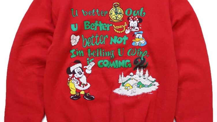 Sixpacjoe80s USA製 Disneyディズニー ミッキー マウス ドナルドダック サンタクロース クリスマス スウェット 赤 M