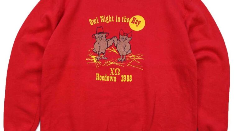 Sixpacjoe80s USA製 RUSSELLラッセル Owl Night in the Hay Hoedown 1988 フクロウ 前V スウェット 赤 XL