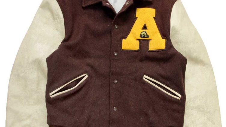 Sixpacjoe60s Varsi-Jac レタードパッチ付き メルトン ウール 袖革スタジャン 焦げ茶×アイボリー